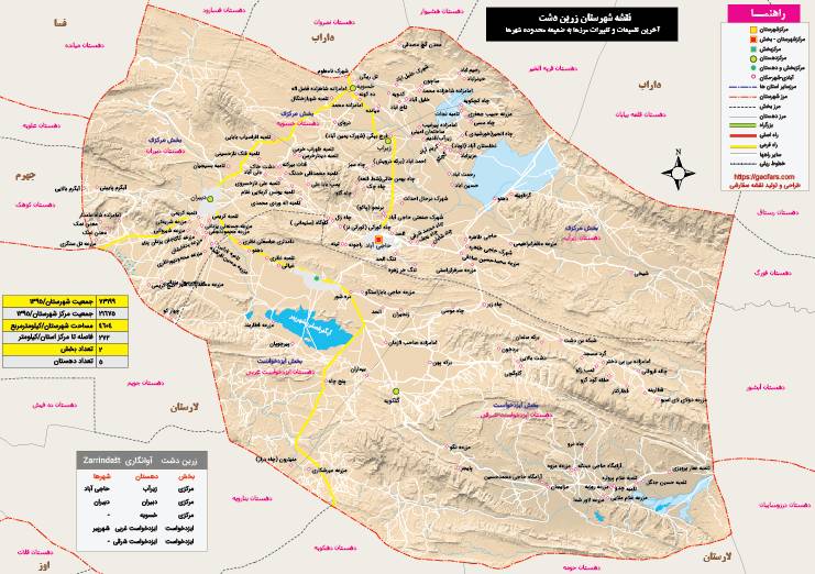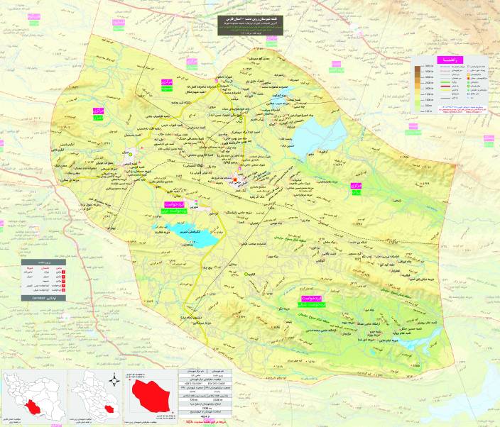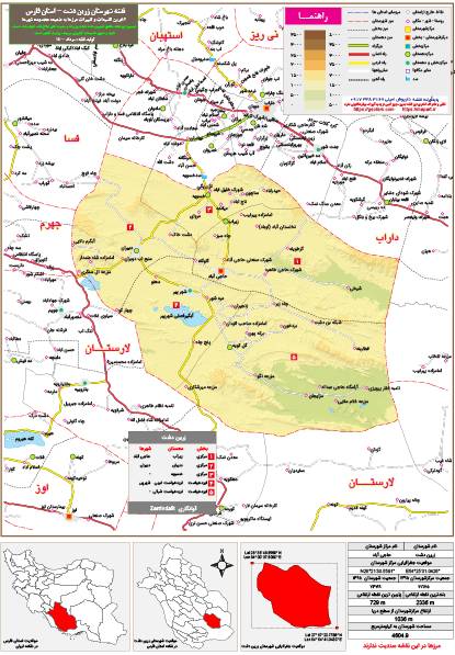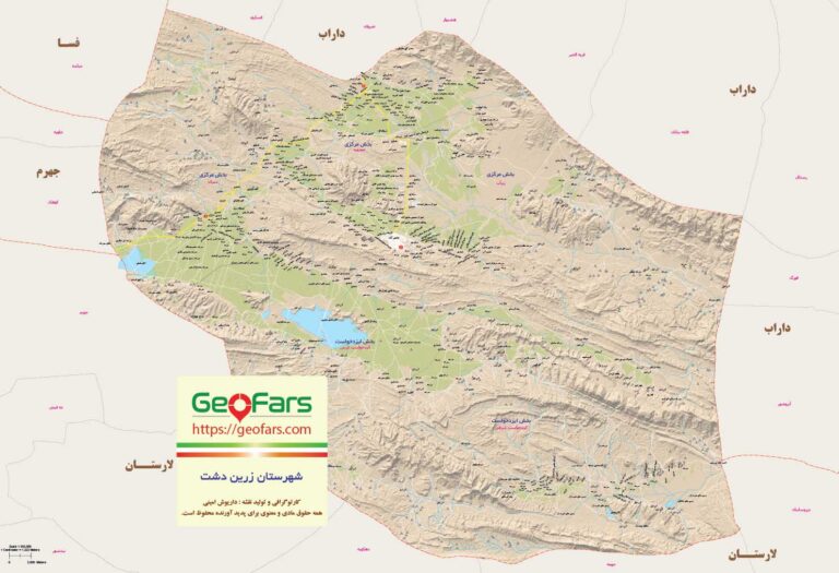 تصویر بالا نقشه کاملی از شهرستان زرین دشت با جزییات و همراه با عوارض طبیعی است . این فایل در مقیاس 1:250000 ایجاد شده است . سفارش نقشه چاپ شده