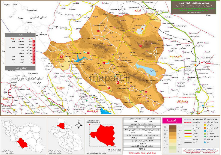 برای تهیه نقشه کامل استان فارس با همین مشخصات در مقیاس 1:500000 از این لینک اقدام کنید : نقشه 1:500000 استان فارس