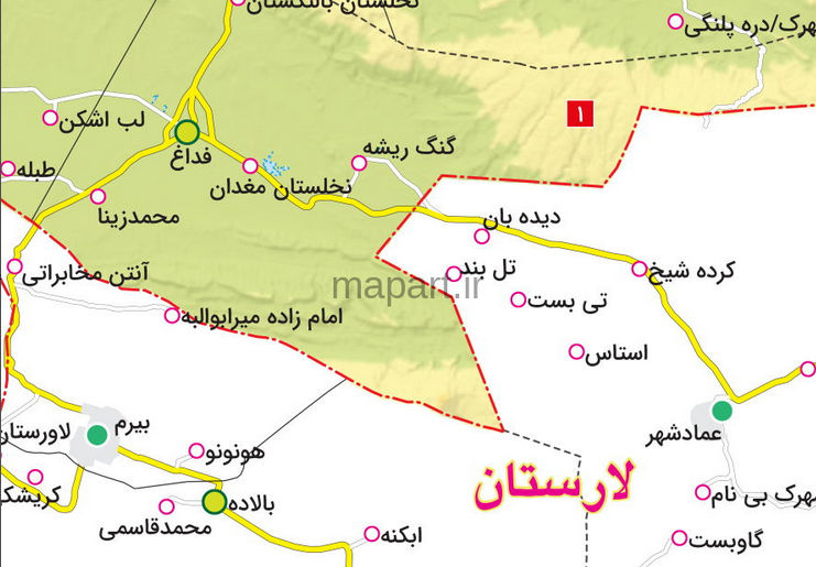 برای تهیه نقشه کامل استان فارس با همین مشخصات در مقیاس 1:500000 از این لینک اقدام کنید : نقشه 1:500000 استان فارس