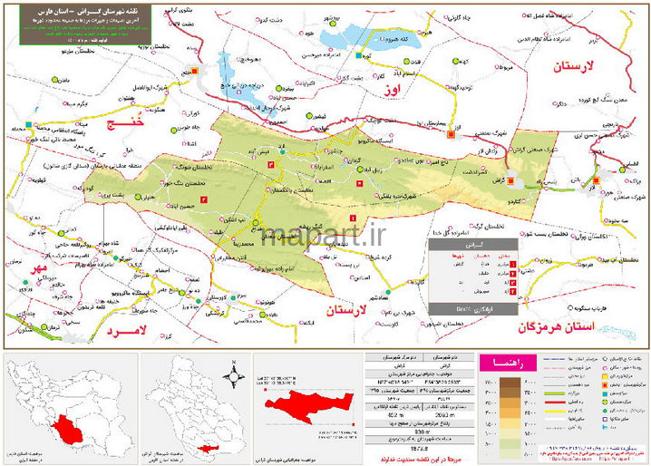 این نقشه به صورت سفارشی و اختصاصی و با کیفیت نمایش عالی برای چاپ ترسیم شده است . تمام داده های نقشه بروزرسانی و تصحیح شده اند . آبادی ها و مکان ها بر اساس موقعیت مکانی بر گرفته از تصاویر ماهواره ای ایجاد شده اند. اشتباهات نقشه های چاپی قدیمی بر طرف گردیده است . راههای ارتباطی شامل راههایی است که موجود و در حال استفاده هستند . تمامی راهها بر اساس موقعیت جغرافیایی و تغییرات احتمالی بررسی و اصلاح شده اند. خرید مدل رقومی ارتفاعی شهرستان گراش از این لینک مدل رقومی ارتفاعی شهرستان گراش