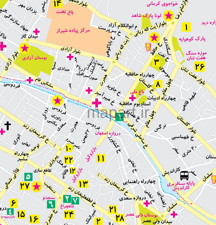 نقشه گردشگری شیراز 1388 به صورت وکتور ترسیم شده است و در دو فرمت PDF و Ai در یک فایل فشرده قابل دانلود است